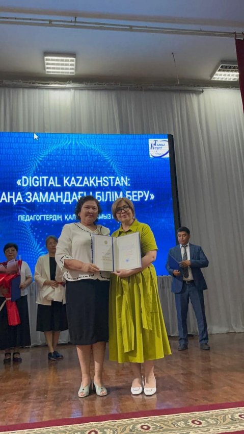 «Digital Kazakhstan: жаңа замандағы білім беру» педагогтердің Республикалық тамыз кеңесі аясында Шымкент қаласы білім басқармасына қарасты N 80 IT мектеп-лицейінің педагог-шеберлері ҚР Оқу-ағарту министрі Ғани Бейсембаевтан білім саласын дамытуға қосқан елеулі үлесі үшін химия пәні мұғалімі Джанмулдаева Гулназ, орыс тілі пәні мұғалімі Курманбаева Бахыт,математика пәні мұғалімі Бакирова Назира "Ы.Алтынсарин" төсбелгісімен, музыка пәні мұғалімі Айтбаев Сабит ұстаздарымыз құрмет дипломымен марапатталды.